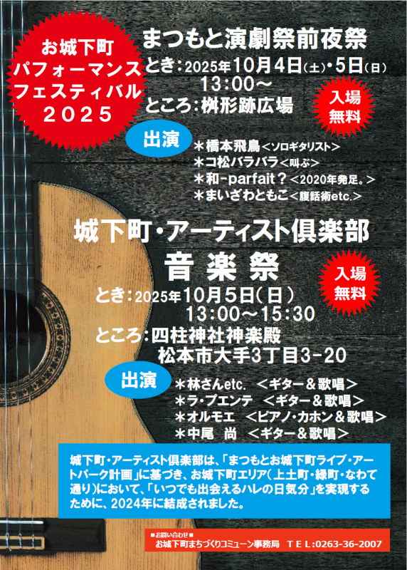 「お城下町パフォーマンスフェスティバル2025」10月4日(土)・5日(日)に開催!